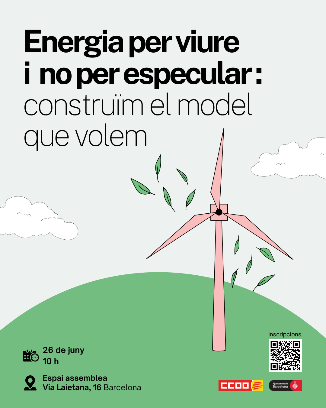 En el marc del 5 de juny, Dia Mundial del Medi Ambient, CCOO de Catalunya obre el debat sobre el model energètic que necessita el nostre país en un context de crisi climàtica, emergència hídrica i especulació energètica. L’acte se centrarà en la necessitat d’un desplegament de les energies renovables que sigui just, planificat i democràtic. Es posarà sobre la taula com els entrebancs polítics i normatius han situat Catalunya a la cua en generació renovable, i com revertir aquesta situació mitjançant la participació social, la planificació territorial i la garantia de drets laborals. Davant d’aquest escenari, CCOO reclama un model de transició energètica al servei del bé comú, que no deixi ningú enrere i que situï les treballadores i els treballadors com a agents centrals del canvi.